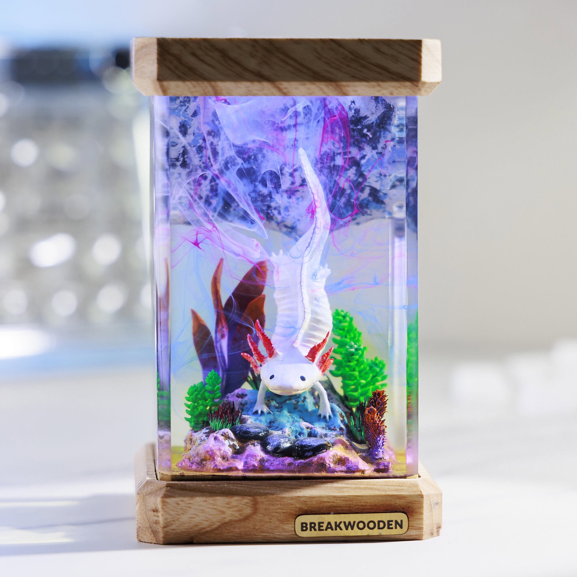 If you love the charm of aquatic creatures and dream of an ambient, whimsical night light, Breakwooden’s Axolotl Resin Lamp is a perfect blend of art, nature, and soft illumination. This lamp captures the adorable axolotl in resin, turning it into a decorative statement piece that feels like a mini underwater world.