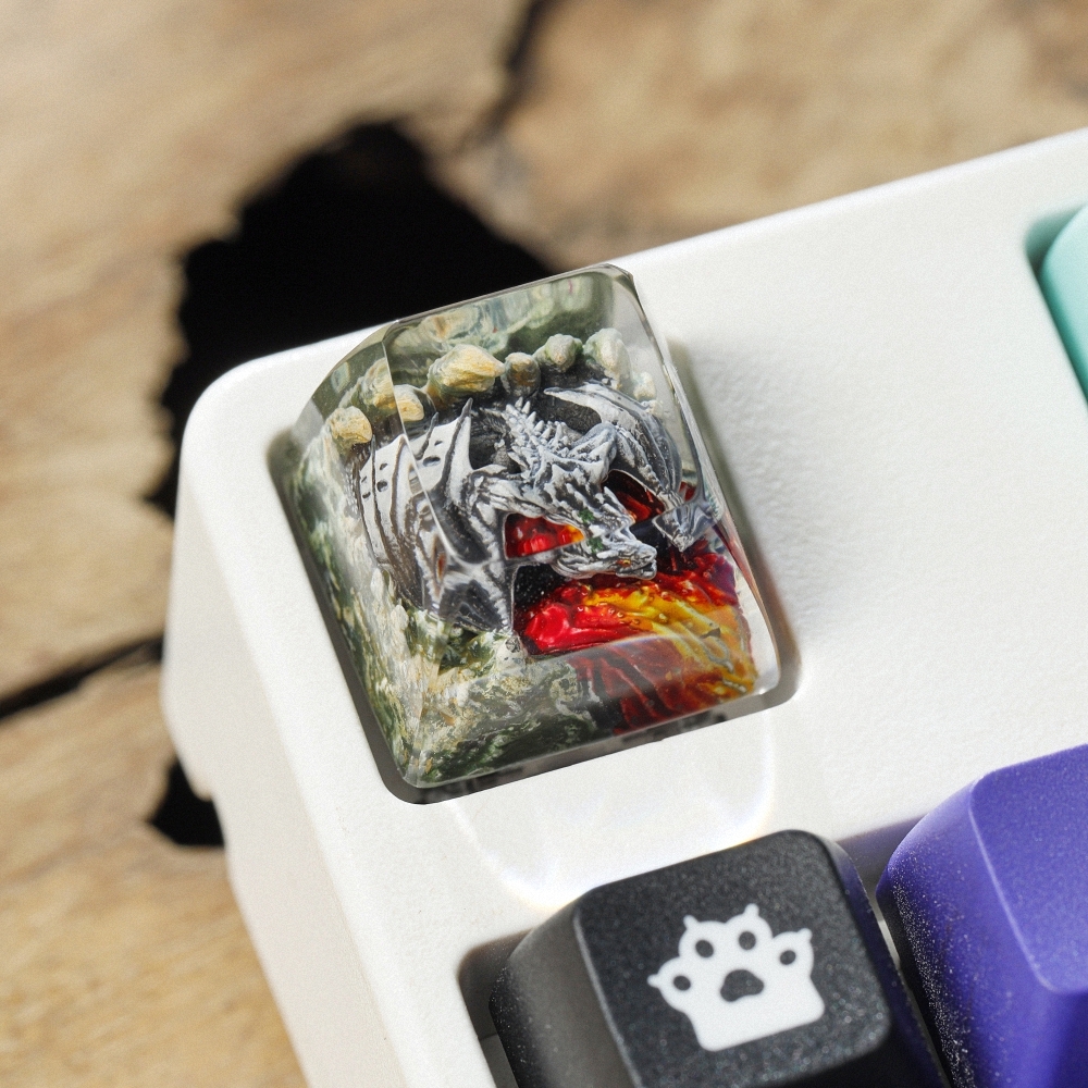 Gray Dragon Artisan Keycap Breakwooden 9